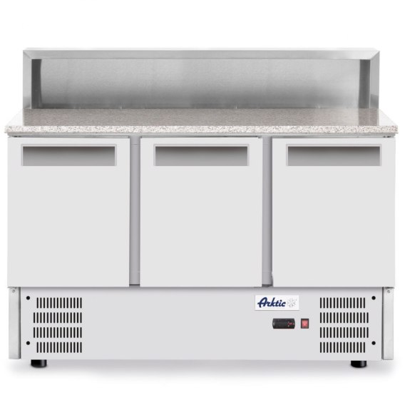 Stół chłodniczy z nadstawą doskonale sprawdzi się do przechowywania żywności oraz przygotowywania potraw. Wyposażony został w granitowy blat roboczy.